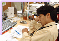 さっそく営業企画局の小林くんとミーティング(写真2)です。彼は入社以来、エンジニアのスキルアップやキャリアアップ、転職などを先行調査していたエキスパートです。なぜ@ITが他でもやっていそうなスキルアップやキャリアアップをやる必要があるのか疑問だったのですが、小林くんの説明で納得です。「@ITでしかできないことがあるんですよ」が決め台詞でした。同時期に開始するサービスも担当していた彼は、"お泊りライフ"(写真3)を満喫していました。そんなこんなでようやく無事Engineer