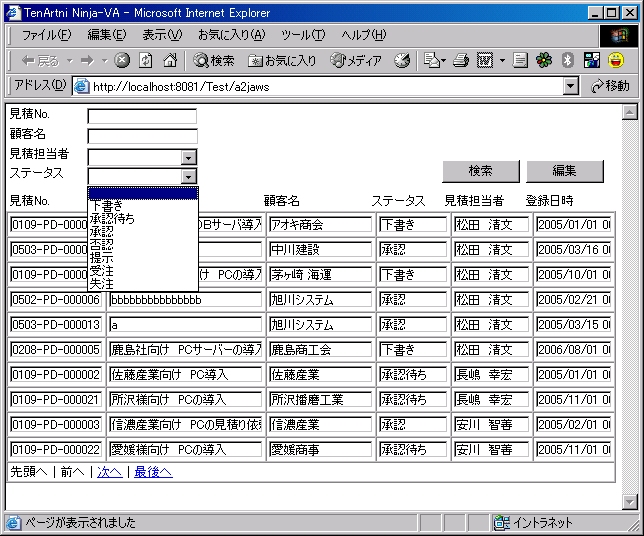 そして、このアプリケーションをNinja-VA に移行し、Ninja-VA IDEに取り込んだ画面、Webアプリケーションの実行画面が以下のとおりだ。