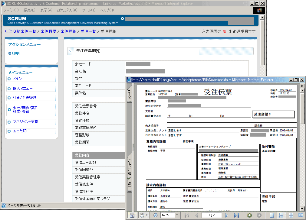 WebReportCafeを帳票ソリューションとした新営業支援システムは、2003年9月より順次展開され、現在では30以上の全営業拠点で利用されている。導入前に課題として上がっていた点は、WebReportCafeの導入によりすべて解決したという。 まずWebシステムとしたことにより、アップデート版の配布やクライアント側でのバージョン管理という作業が霧消した。営業業務の変更や進化に合わせて機能強化されると、その時点から営業担当者がその利点を享受できるようになった。 またPDF出力にセキュリティ機能を付加したことで、ベルシステム24としての企業コンプライアンスが遵守しやすい環境も醸成された。「このPDF出力では、プレビュー機能を利用して設計中の帳票を瞬時にPDFおよび印刷イメージとして見ることが可能です。それが仕上がりイメージを確認したい営業担当者に好評ですね」(水上氏)。 新営業支援システムでの成果を評価して、ベルシステム24ではこの帳票ソリューションを販売管理システムでも利用し始めた。ほかにもJavaベースで開発されるWebシステムは、すべてこの手法が採用されることになっており、WebReportCafeが同社の帳票ソリューション基盤として活用されている。 企業情報システムの中で急速に広がりつつあるWebシステム。そのWebシステムのために生まれた帳票ソリューション、WebReportCafe。その先進機能がベルシステム24のフットワークの良い営業活動を支えている。