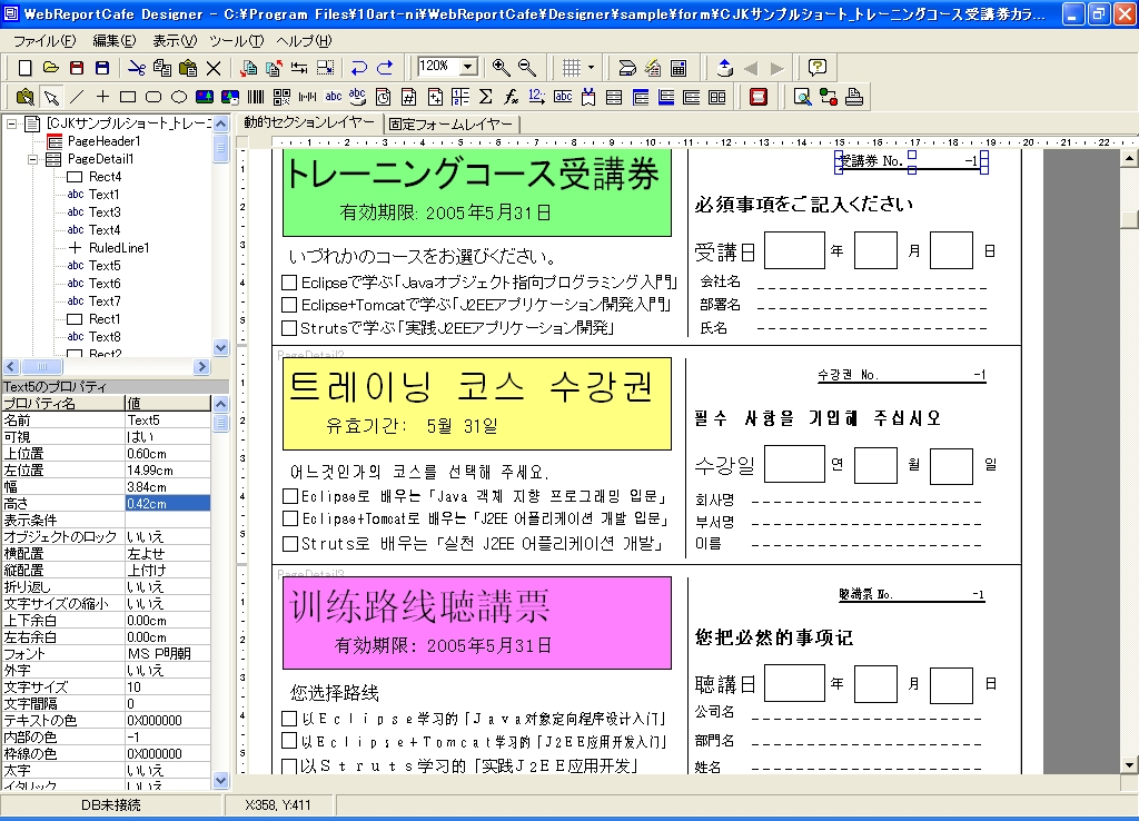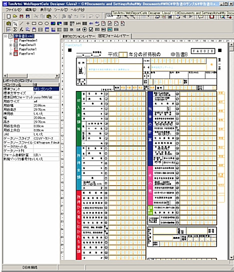 WebReportCafe Designerでは、帳票設計を簡単に行え、豊富な機能を搭載している。中心に帳票を設計・プレビューするイメージビューを置き、左ペインには帳票のオブジェクト構造を表示するツリービュー、各オブジェクトのプロパティを設定するプロパティエディタがある。 ■誰でも複雑な帳票を容易に設計可能 紙の帳票をOCRで読み取りWebReportCafe Designer上の帳票設計情報に自動的にコンバートする機能が用意されている。OCRの読み取り機能は国内最高水準を誇り、旧資産からの移行においては、抜群の生産性を実現する。 また、BMPファイルを下絵としながら帳票を設計できる「下絵機能」、1ミリの狂いもない帳票の設計を支援するグリッド線機能などが提供される。ツール内に帳票生成エンジンを内蔵するため、常にプレビューを行って実際の帳票イメージを確認しながら作業を進めることができる。