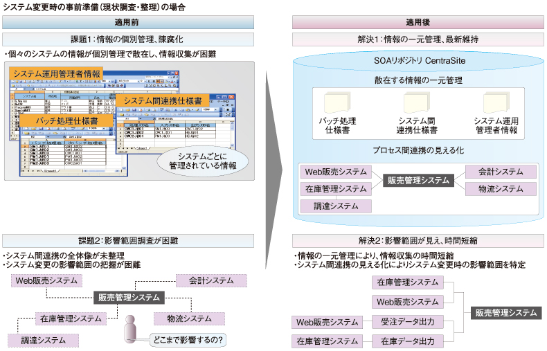 図1 CentraSiteの適用によって、システム変更時の事前準備(現状調査・整理)を効率的に実現できる(クリックすると拡大します) |