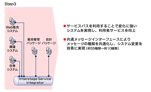 ステップ2を終えた時点で、基幹システム再構築にかかわる実作業は完了。ステップ3では、既存システムを完全に撤廃し、SOAが適用された新システムとして本稼働を開始している。