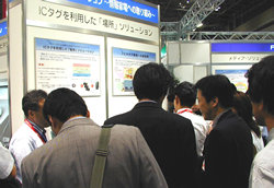 ESECでは、このLPSを使ったデモが人気を博していた。4月時点ではいかにも試作品といった風情を漂わせていたタグリーダも、右の写真のようにデザインを一新し、製品らしくなっていた。