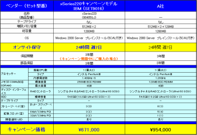 ●企業の部門や中小企業でのファイル/プリントサーバに適した 「コストパフォーマンス+サービス」といえば、まさに「IBM eServer xSeries 」バリュー・カスタマイズ・キャンペーン・モデルである。キャンペーン対象となっているモデルは、Windows 2000 Server OSをプリインストールしており、Windows NT(以下NT)の段階的サポート終了によるNTからの乗り換えには最適だ。 「IBM eServer xSeries 」の中のxSeries200は、Pentium III プロセッサ 1.26GHz-Sを搭載しており、また、xSeries220/xSeries232は、Pentium III プロセッサ 1.40GHz-Sを搭載している。このCPUのスペックは、企業の部門レベルや中小企業で用いるファイルサーバやプリントサーバとして十分活用できるスペックである。 メモリに関しても、xSeries200は896MBytes、xSeries220/232は1280MBytesと、デフォルトで稼動十分なメモリが添付されている。これにより購入後に余計なコストをかけずにすむのだ。 ●見逃せない「24時間 365日に対応した3年間オンサイト保守サービス」 日々の業務で使っているファイルサーバに障害が発生し、システムがダウンしてしまったら、どうなるだろうか? このとき、社員が重要な資料を取引先に持っていかなければならず、その資料がファイルサーバ上にしかなかったら……。 エントリーサーバの保守は、営業日の9〜17時までしか対応していないベンダも少なくない。しかも祝祭日、年末年始も対応しておらず、修理を依頼しても早くても翌日、または週末をはさんでいる場合などはさらに翌週になってしまうこともある。 このように管理者にとっても、利用者にとっても、24時間 365日に対応した3年間オンサイト保守サービスは、見逃すことのできないサービスなのだ。
