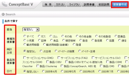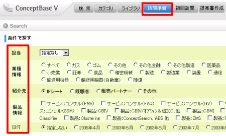 そこで、これらすべてのデータを対象にConceptBase Vの属性検索機能を用い、必要な情報を一元的に検索するためのベースとなる、営業フェーズ別のシートをカスタマイズ作成。各営業フェーズ用のシートから販売対象製品や見込み顧客の業種を選択することで、即座に各段階で必要とされる情報に到達できるようになった。これにより、社内に蓄積されている営業関連情報が、すべての営業スタッフに確実に参照されるようになった。