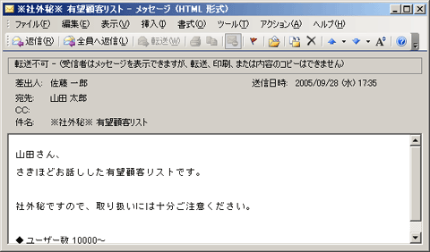 このようにRMSとOutlook 2003を組み合わせることで、機密メッセージの転送を強制力を持って禁止できるようになる。