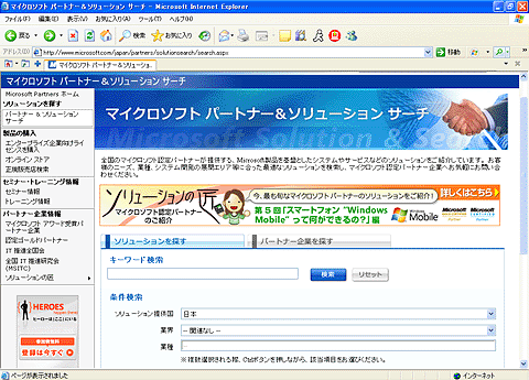 @IT > 「最適な答え」を効率的に、マイクロソフト パートナー&ソリューション サーチ |