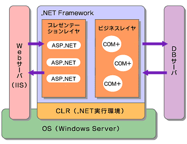 では、プラットフォーム選定で問題となるのはどの部分だろうか。両陣営の決定的な違いは、J2EEではOS+J2EEサーバ+コンポーネントの3重構造だったものが、.NETではOS+コンポーネントの2重構造に統合されていることだろう(上述の図1、図2を参照)。Windows ServerはOSであると同時に、WebサーバのIISを内包し、負荷分散、セッション管理、データベース接続、分散トランザクション、セキュリティといったインフラ機能を提供する.NET FrameworkがWindows Server自体に組み込まれ、さらにコンポーネントの実行環境ともなっている。 この.NETのシンプルな構成は、後述する開発生産性や導入・環境構築の容易さ、サポート体制の一貫性など、さまざまなメリットを提供してくれる。一方で、.NETはプラットフォームがWindows OSに限定される制約が生じてくる。J2EEのマルチプラットフォームを取るか、.NETのシンプルさを取るかが選定のポイントとなるが、その判断は後述の諸要素も含めて、総合的に判断すべきだろう。 (2)開発言語 Webアプリケーションの開発がCGIから.NET/J2EEに移行した背景には、増大する機能要求に対して、PerlやPHPなどのスクリプト言語では対応しきれなかったからである。本格的なオブジェクト指向言語による開発が必須となった。 日本でも2002年前後から急速にUMLを使ったオブジェクト指向開発の導入が進んだ。その当時、オブジェクト指向言語として普及していたのはJavaであったため、UML=Javaといったイメージが先行したが、本来UMLは実装言語に依存しない抽象的な設計ツールである。UMLで標準化されたダイアグラムを使ってオブジェクト指向的にシステムの設計を行うことは、高機能化に対応して多数のプログラマを投入するWebアプリケーション開発に、非常に有効であると認識されるようになった。 それまでVisual BasicやVisual C++が中心だったWindowsアプリケーションの開発環境にも、2002年にリリースされたVisual Studio .NETから新たなオブジェクト指向言語として「C#」が導入された。C#技術情報の詳細はMSDNのWebページに掲載されている以下の技術文書を参照していただきたい。 言語仕様を比較すると、後発であるC#はJavaのオブジェクト指向言語の良い部分を取り入れたうえに、属性の指定やビジュアル開発環境との連携といった実用性において、よりプログラミングを効率化する仕様を取り入れている。また実行効率の面では、マルチプラットフォーム対応のJavaに比べ、単一プラットフォームに特化したC#は、システム全体のパフォーマンスにおいて有利である。 .NETはマルチ言語に対応しさまざまなデバイスに搭載可能であるが、プラットフォームはWindowsファミリーのみとなる。一方、Javaは基本的に単一のJava言語のみでマルチプラットフォームに対応する。例えば、サーバサイドの旧COBOL資産の移行性など、既存の開発リソース(既存のソースコード資産、開発者のスキルなど)の有効利用を考慮すると、単一の言語での開発を強要するよりも、.NETを選択しプロジェクトに合った言語を自由に選択するといった判断もあり得る。Windowsファミリー以外のプラットフォームを視野に入れるなら、Javaを選択することになるだろう。 (3)フレームワーク CGIからオブジェクト指向開発、分散型コンポーネント・モデルへと進化したWebアプリケーション開発は、新たな困難に直面した。開発要件が高度になるにつれ、スキルの伴った開発者の不足が表面化したのである。これは特にJ2EE開発で顕著となった。J2EEの開発者は、前述のServlet、JSP、EJBのほかにもJNDI、JDBC、RMI、Java Beanなど非常に多くのAPIを理解し、なおかつJ2EEアーキテクチャに基づいた開発モデルを実践する必要があり、技術の習得が追い付かない状態が続いた。 これに対して.NETは、エンタープライズシステムに求められる諸要素をあらかじめ設計思想として組み込んだフレームワークを当初から用意している。これは.NET Frameworkと呼ばれるもので、Webアプリケーションに必要とされる以下の機能をビジュアル開発環境とともに提供しているのだ。