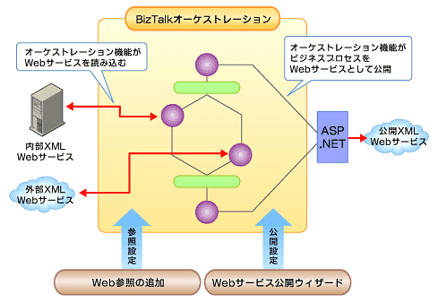 Webアプリケーションの性能と信頼性が大幅に上がったことで、企業システム開発において新たな要求が持ち上がっている。それは以前から求められながらも、なかなか達成できない企業内のシステム統合だ。企業のITシステム投資はここ数年めざましいものがあったが、それは部門や営業/製造拠点など、部分最適化を目指したシステム化であった。その結果、企業内に数多くのシステムが孤島のように乱立し、しかも各システムのプラットフォームはレガシーからUNIX、Linux、Windowsとばらばらだ。これらを統合してシステムの全体最適化を図りたいという要求が強まってくるのは当然な流れである。 Webサービスを実装したWebアプリケーションは、従来のEAI製品に取って代わるシステム統合のキラー・アーキテクチャとして期待されている。ビジネス統合システムへの拡張に関して、.NETとJ2EEの両陣営はどのような製品を投入しているのか検討していこう。 (1)SOA/BPM Webアプリケーションを中核としたシステム統合は、ハブ・アンド・スポークと呼ばれるモデルを採用する。これは従来のEAIから引き継いだ考え方で、異種システム環境の中心(ハブ)にWebアプリケーションを配置し、孤立したシステムとの連携を果たす通信手段(スポーク)を用意するというもの。孤島システム同士が個別にプロトコルを決めて連携するよりも、はるかに効率的で投資効果も高い。 ハブ・アンド・スポークを実現するには、異種システムのすべてと連携できる共通のインターフェイスが必要だが、XMLをベースとした業界標準プロトコル「Webサービス」がその役割を担うとの認識が生まれつつある。標準化されたプロトコルであるWebサービスの登場によって、2004年には新たに「SOA」という言葉が大流行した。SOAはWebアプリケーションを中核としたシステム統合をもう1歩進めて、特定の業務に特化した複数のビジネス・アプリケーションを次々と呼び出す(オーケストレーション)ことで、ビジネス・プロセスを実行するというビジネス統合型アーキテクチャである。 SOAの詳細はMSDNの技術文書「プラットフォーム非依存の次世代エンタープライズ システム構築を可能にするマイクロソフトの SOA」の該当個所を以下より参照していただきたい。 .NETはリリース当初から、Webサービスのサーバ、クライアントの両方をビジュアル開発環境で容易に作成できる多くの機能を盛り込んでいる。つまり、通常の.NET環境でもWebサービスをインターフェイスとした疎結合型のシステム統合は可能だが、さらにSOAへと進む場合は、BizTalk Serverを採用することになる。BizTalk Serverは.NETアプリケーションにビジネスプロセス管理(BPM)やEAI、BtoB、インターネットEDIなどの機能を追加するミドルウェアだ。 BizTalk Serverの詳細はMSDNの技術文書「プラットフォーム非依存の次世代エンタープライズ システム構築を可能にするマイクロソフトの SOA」の該当個所を以下より参照していただきたい。