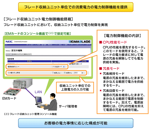 図2 ブレード収納ユニット単位の電力制御ではきめ細かな設定が可能 |