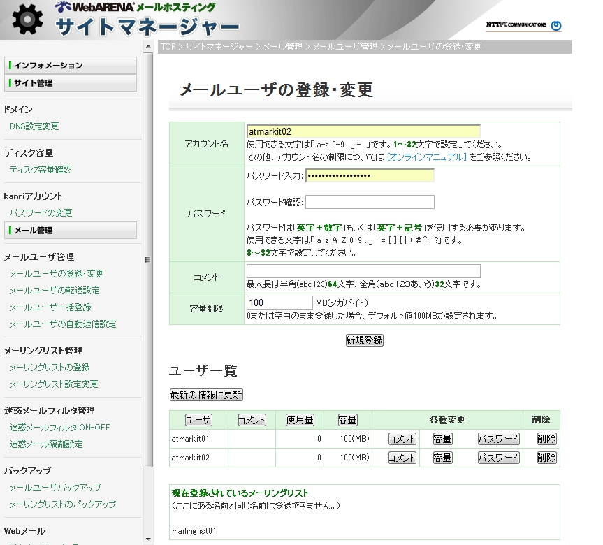 そういう人たちにとって、NTTPCコミュニケーションズが3月21日に提供開始したばかりの「WebARENA メールホスティング」は、ちょうどいい解決策になるかもしれない。これは、まさにコストの点から従来型のメールASPまでは手を出せないが、安心できる、しっかりとしたメールサービスを求める企業のためのサービスだからだ。