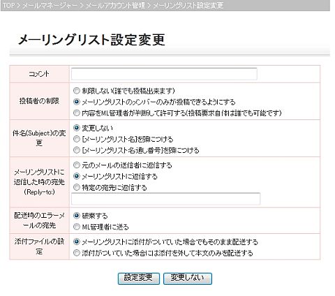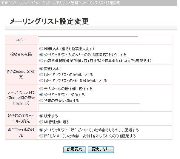 | メーリングリスト管理者となったユーザーは、メンバーの追加・削除のほか、上記のようなメーリングリストの設定が可能 |