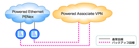 さらにPowered Associate VPNは、安価なバックアップ回線として役立つだろう。業界最高品質の99.99%の稼働率を誇るPowered Ethernetだが、万が一に備えて、Powered Associate VPNをバックアップ回線として用意しておけば、いっそう安心だ。