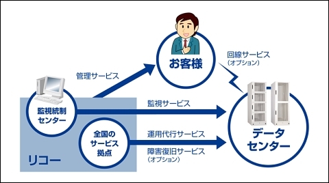 データセンターでスペースだけを借りても、企業の担当者の負担が減ることはない。日常的なシステム監視が重要で、トラブルが発生した際にはデータセンターに出向いて対応しなければならない。ハウジングパックであれば、これらも含めシステムの日常的な運用作業をリコーの専門技術者に標準で委ねることができる。また、リコーでは主要ベンダのサーバの障害復旧サービスもオプションで別途行っている。そのため、トラブル時でも自らが復旧作業を行う必要はなく、ワンストップでリコーに対応を依頼できる。
