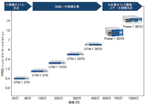 図2 UTM-1/Power-1は小規模から大規模までフルラインアップを用意 |