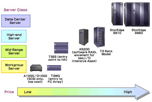 StorEdge A5200、フルファイバ仕様のSun StorEdge T3シリーズ、そして日立との提携によって追加されたSun StorEdge