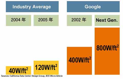 さて、結論から先に申し上げると、これからのTCO削減を考える際のキーワードは「消費電力」と「設置スペース」だ。特に、従来のように処理性能だけを考えていない点に注目してほしい。 アメリカのIT企業を対象とした調査では、サーバ導入が進むとともにシステム全体の消費電力が上昇し、“サーバの購入費用よりも電気代の方が高くなる”という懸念が生まれている。 例えば、一般的な企業の場合、2004年における消費電力が40ワット(1平方フィート当たり)から、2005年には3倍の120ワットになる。さらに、サーバ搭載密度の高いインターネット企業では、2002年の400ワットが次世代サービスの導入によって、2倍の800ワットになる見込みだという。