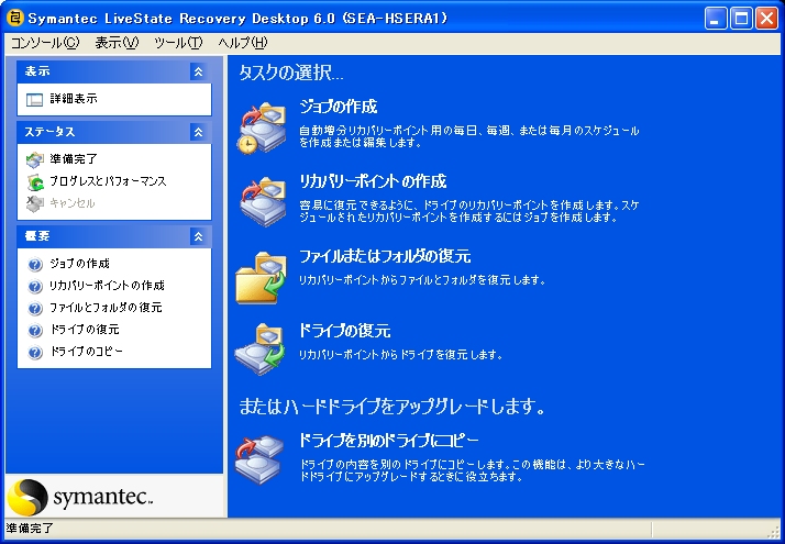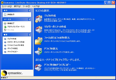 一方で、「Symantec LiveState Recovery 6.0」(以下、LSR6.0)は、Windowsシステムにおいてドライブ全体をイメージ化してバックアップすることにより、システム全体の復元を高速に実現するシステム保護ソリューションである(画面2)。