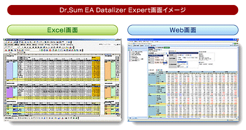 この集計検索エンジンのアップグレードに合わせて、新たな製品も誕生している。それが、ユーザーに使いやすさを届けるインターフェイスモジュール「Dr.Sum EA Datalizer Expert」で、Dr.Sum EAからの集計データを、WebブラウザでもExcelでも集計することができ、必要に応じて集計結果をPDFに変換することも可能である。