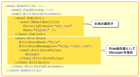 図13に示す例は、図12に示した主体 “Suzuki”の資格の問い合わせ要求に対して属性値 “Manager”を含む属性アサーションである。