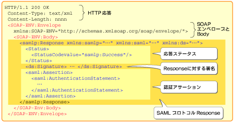 図17は図16のSAML認証要求に対する応答の例で、認証アサーションが返される。
