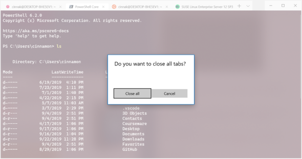 Windows Terminalのキーバインドオプションに「closeWindow」を追加した。この機能を呼び出すと、ウィンドウを閉じる。ユーザーが複数のタブを開いていた場合は、全てのタブを閉じてよいかどうか確認メッセージを表示する。