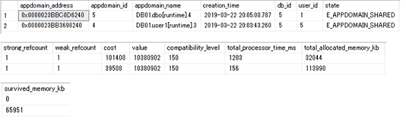 「creation_time」列の値が変更されており、一度アプリケーションドメインがアンロードされたあとに再作成されたことが分かります。前回作成されたときと、「appdomain_address」列や「appdomain_id」列、「appdomain_name」列の値が変更されました。