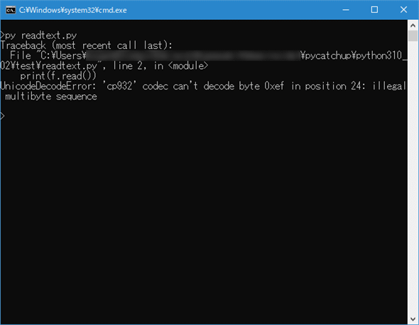 これは結局のところ、デフォルトのエンコーディングを使うわけだが、プログラマーがそのことを明示的に指定している点が異なる。何となくデフォルトのエンコーディングを使うのではなく、明確な意図があってデフォルトのエンコーディングを使うのだと、Python(やそのコードを読むプログラマー)に伝えているということだ。