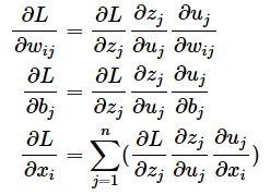 # (3)線形和を重み/バイアス/入力で偏微分