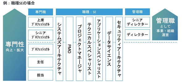 NECソリューションイノベータでは、エンジニアとして入社した後、専門職をメインとしたキャリア体制を構築している。シニアプロフェッショナルや上席プロフェッショナルといった役員クラスの上級職ポジションも用意しているのは、”技術者集団”ならではといえよう。