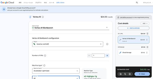 Google Cloudの料金計算ツールを使えば、事前に利用料金を見積もることもできます。これを使い、利用料金が予算内に収められそうかどうかの判断が可能です。