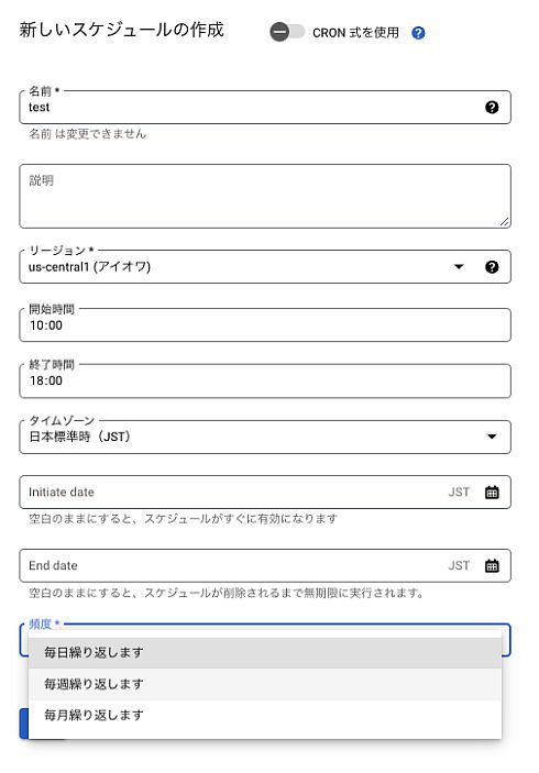 CRON式によるスケジュール設定も可能ですが、時間をそのまま入力する方法がデフォルトになっていて、感覚的に設定できます。