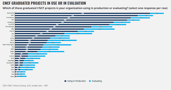 CNCFはLinux Foundationの傘下団体であり、この調査はLinux Foundation Researchと共同で2024年11〜12月に実施され、企業や団体に勤務する約690人が回答した。