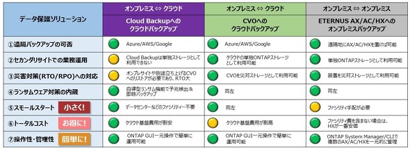 Cloud Backupは、ONTAPがネイティブで提供する機能だ。エフサステクノロジーズがETERNUS AX/AC/HX seriesで提供するに当たっては、開発元のNetAppとの協業関係の下で技術検証をしており、中小規模のシステムから大規模システムまで高い信頼性の下で利用できることを確認している。