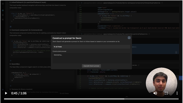 複雑な作業に入る前にコードベースを深く理解することは極めて重要だが、それは開発フロー上のボトルネックにもなりやすい。Devinサーチは、コードベースを効率的に探索、理解するためのエージェントツールだ。
