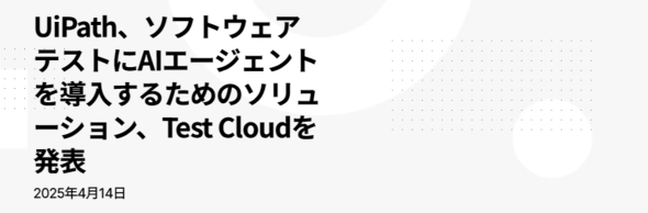 UiPathは2025年4月14日、「UiPath Test Cloud」の提供を開始すると発表した。同社は「テスト自動化は従来、コストや時間、リソースを大量に必要としていた」と指摘。こうした課題をAI(人工知能)によって解決するのが目的だ。