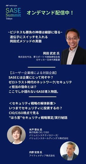 経営層はセキュリティを重要な経営課題として認識している一方で、そのコストは「やむを得ない」「収益に貢献するものではない」と見なしがちだ。イベントで語られたユーザー企業の知見は、SASEを軸にしたセキュリティ対策を考える企業にとって貴重な道しるべとなるだろう。