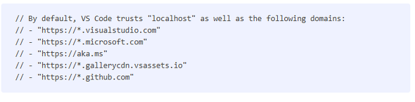 LLM用エージェントツールに「fetch_webpage」がある。これは、任意のWebサイトにHTTPリクエストを送信するツールで、指定したWebサイトの内容を取得できる。対象のWebサイトが「信頼できるWebサイト」のリストにない場合は、ユーザーにリクエストの可否を確認する仕様になっている。デフォルト(初期設定)では、VS Codeは「localhost」と「github.com」「Microsoft.com」など幾つかのドメインを信頼している。