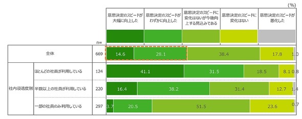 具体的な効果としては、42.7%の企業が「意思決定スピードが向上した」と回答した。