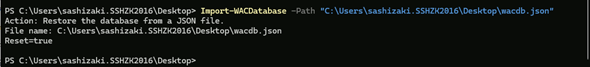 Import-WACDatabaseコマンドレットをシンプルに実行した結果、リセットとの表示を得ました。