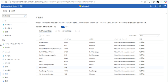 なお、先に拡張をアンインストールしておいてから、Import-WACDatabaseコマンドレットを実行しましたが、拡張の状態は復元されませんでした。