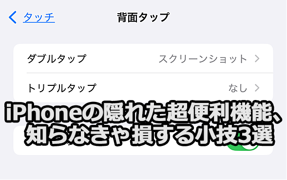 「背面タップ」など知らなきゃ損する小技3選毎日使っているiPhone、いつの間にか実装されたものなど、実は意外と知らない便利な機能がある。本Tech TIPSでは、その中からiPhoneの使い勝手を向上させる3つの小技を紹介しよう。