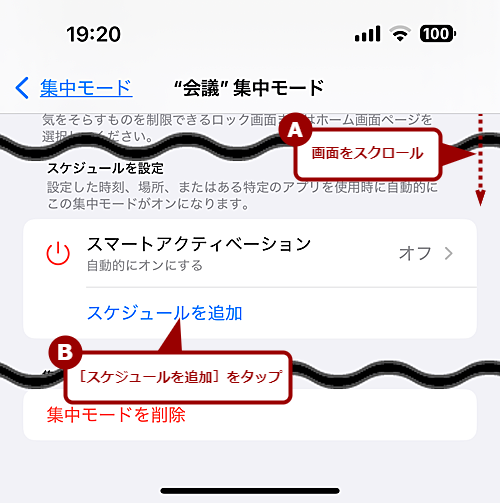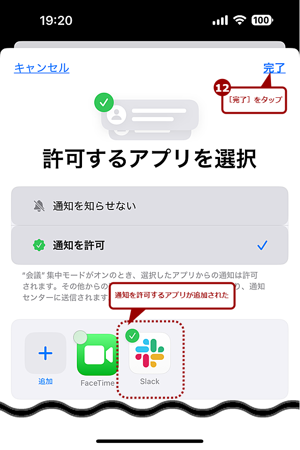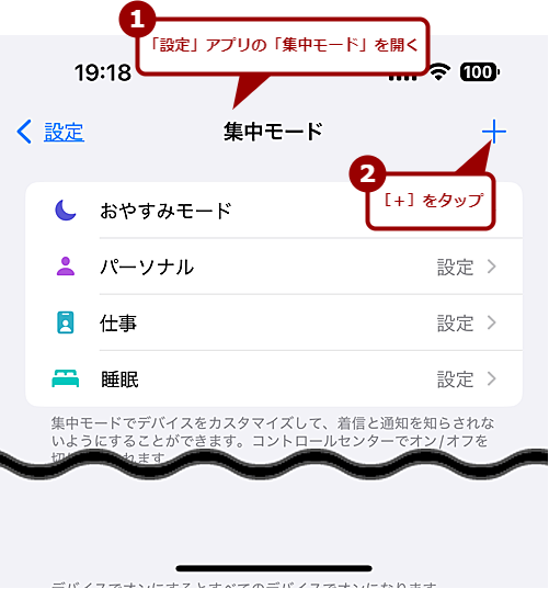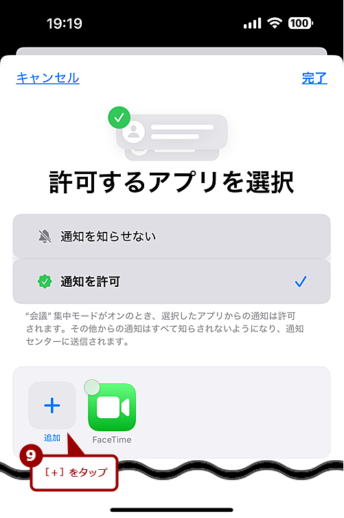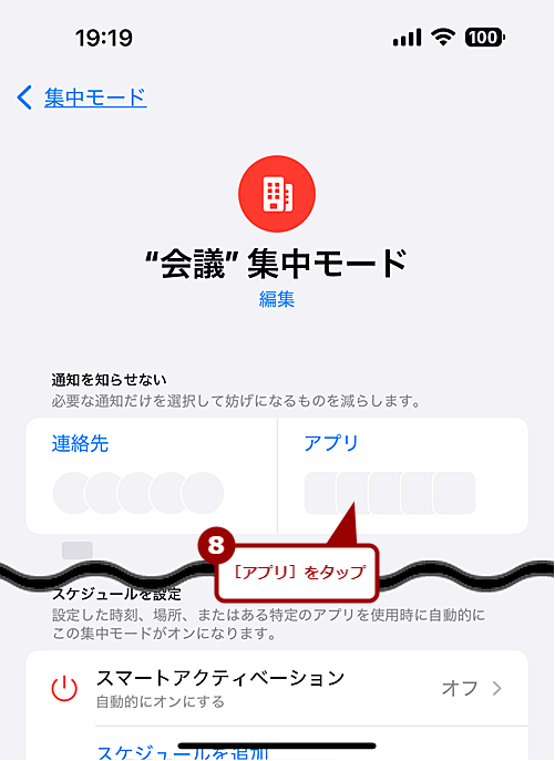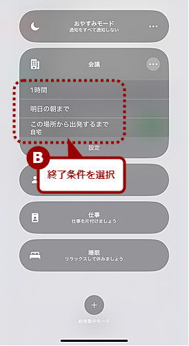 「集中モード」を使って「会議」などの目的や状況に合わせて通知を制御するには、以下の方法で「集中モード」を設定すればよい。