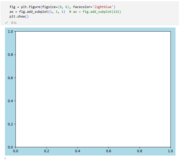 Figureオブジェクトの作成→Axesオブジェクトの作成を段階的に行う必要がないのであれば、pyplot.subplots関数を使って両者を一度に作成してしまうのが一番簡単でしょう。
