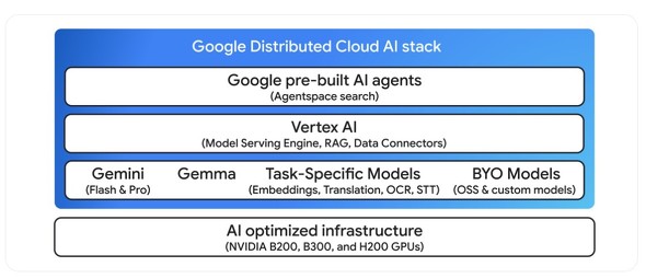 GDCは以下のように、AIインフラとGeminiの力を組み合わせたエンドツーエンドのAIスタックで構成されている。Googleは「この仕組みで、あらゆるAIワークロードを加速および強化する」としている。