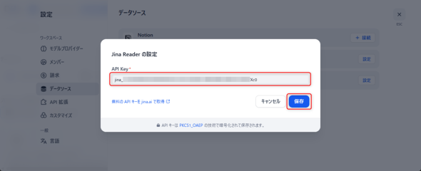 JinaのAPIキーを入力して保存します(図20)。