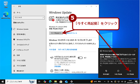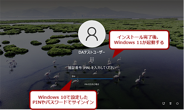 これでWindows 11のインストールイメージのダウンロードとインストールがバックグラウンドで実行される。この間は、通常通りWindows 10を使って作業することも可能だ。インストールが完了すると、再起動が要求される。再起動後、システムファイルの置き換えなどが実行され、Windows 11が起動する。
