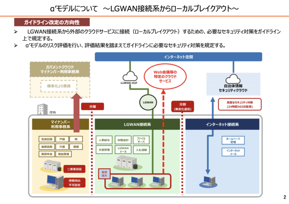 しかし、インターネットへ接続できないことによる業務上の不便が生じ、再びインターネット系に業務を戻す動きが出てきた。そのモデルは幾つか用意され、自治体がモデルを選択し、実装している。