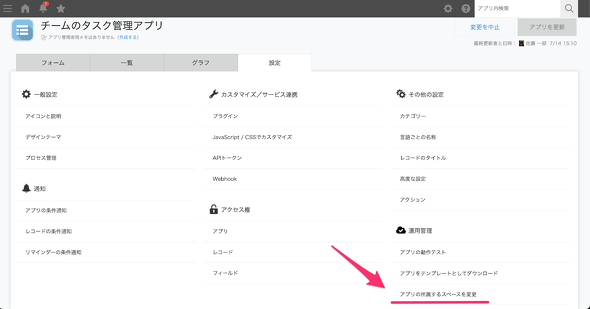 4. アプリの所属スペースを変更する
