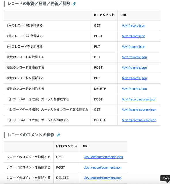 ドキュメントにあるように、レコードやファイル、アプリの設定情報などに対する、取得、登録、更新、削除などのAPIが用意されています。これらを組み合わせることで、例えば「任意のフィールドの値を取得&加工し、別のフィールドにデータを登録する」といった作業を自動化できます。
